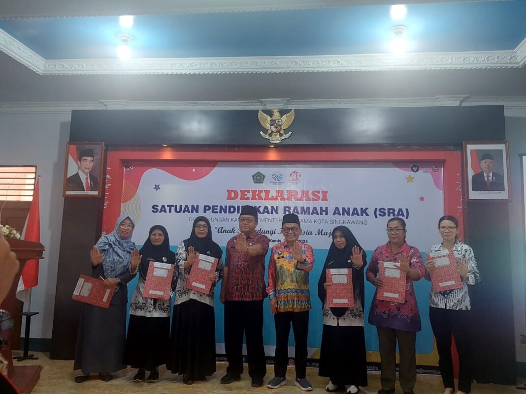 Acara dilanjutkan dengan penyerahan Keputusan Kepala Kantor Kemenag Kota Singkawang tentang Penetapan Satuan Pendidikan Ramah Anak (SRA) di Lingkungan Kementerian Agama Kota Singkawang kepada Satuan Pendidikan Ramah Anak secara simbolis yang akan diwakili oleh 6 Satuan Pendidikan Ramah Anak, yaitu: RA Al Ikhlas DWP Kantor Kemenag Singkawang, MIN Singkawang, MTsN Singkawang, MAN Kota Singkawang, SMP Teologi Kristen Intheos, TK Nava Dhammasekha Fajar Mulia.