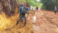 TNI Bersama Masyarakat Perbaiki Jalan Perbatasan